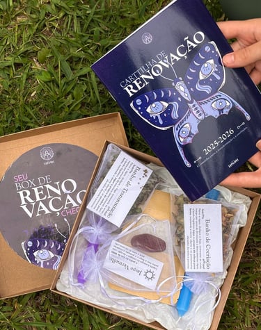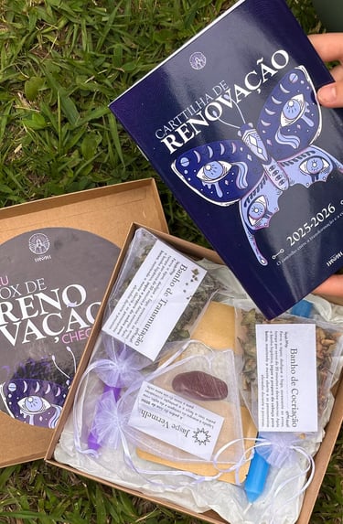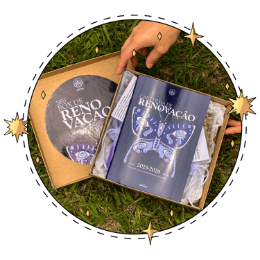 O Box de Renovação 2025–2026 é um kit ritualístico completo criado para te acompanhar na passagem de ciclos do Ano Universal 9 (2025) para o Ano Universal 1 (2026), é agora que começamos um novo ciclo de 9 anos!